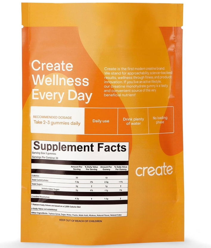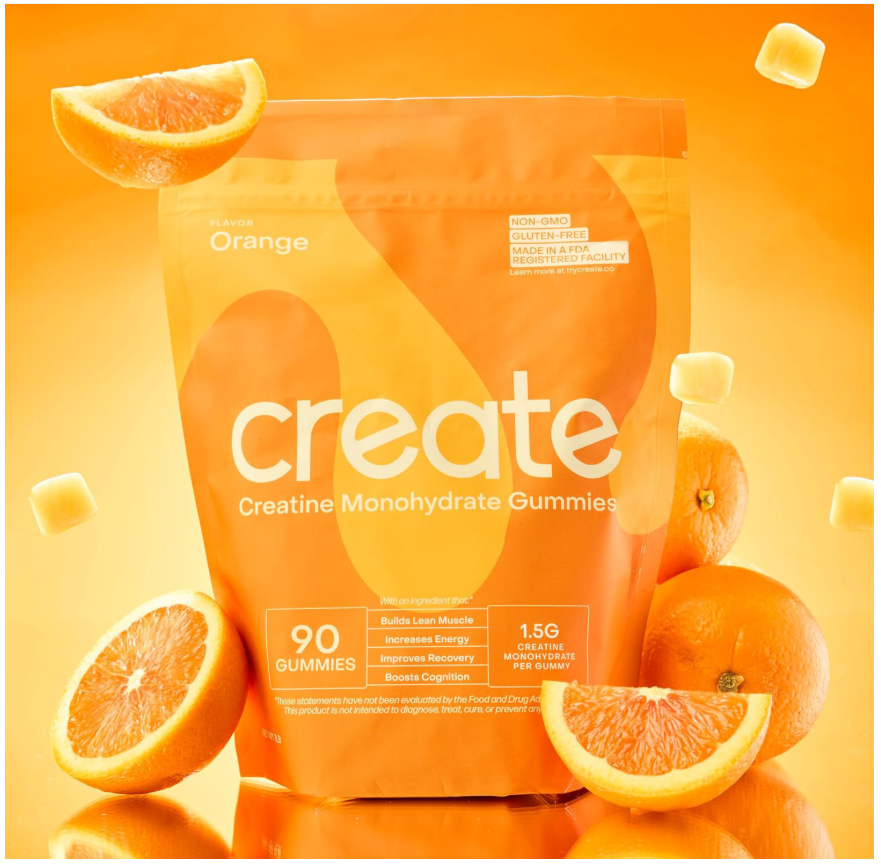 Create is the first mode m creatine brand.We stand for approachabiity, science-backed results, wellness through fitness, and product innovation. lf you live an active lifestyleour creatine monohydrate gummy is a tastyand convenient source of this verybeneficial nutrient!