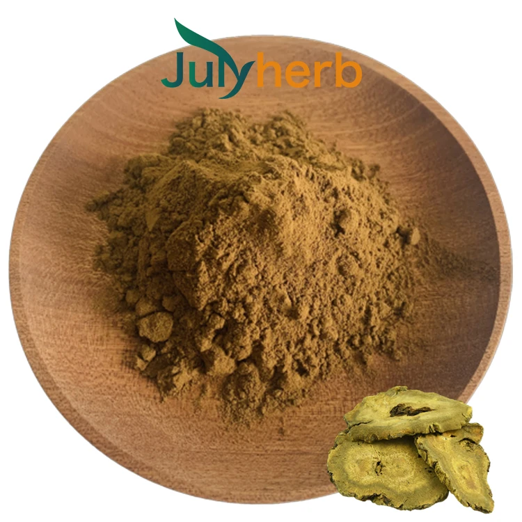 Rhubarb extract is the dried root and rhizome extract of Rhubarb palmatophyllum, Tanggu Megalum or medicinal Rhubarb of the polygonaceae family. Rhubarb also known as Huangliang, fire ginseng, general, Sichuan army, fragrant Rhubarb, horseshoe gold,cotton grain, broken door, musk deer; It is a tall perennial herb, about 2m high. Rhizomes and roots are thick, yellowish brown.https://www.julyherb.com/